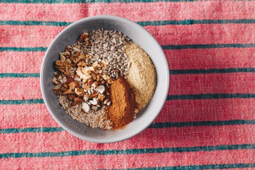 - Breakfast: Oatmeal topped with banana and a sprinkle of nuts.
